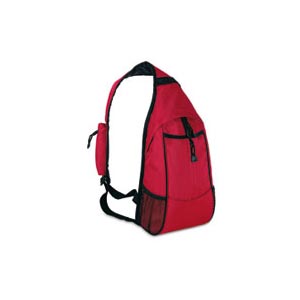 Backpack with mesh pocket and mobile phone holder on one strap.600D polyester and 190T lining.