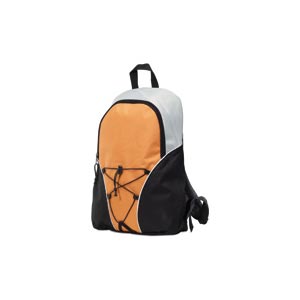 600D polyester backpack with foamed back and elastic cord on the front to hold your water bottle.