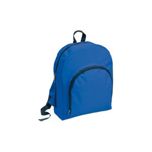 600D polyester backpack with contrasted zipper and front pocket.
