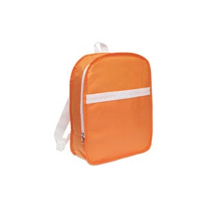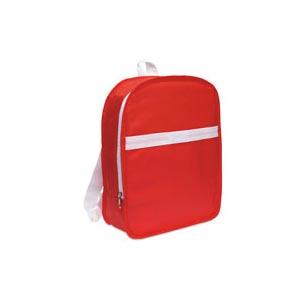 Backpack in non-woven with white trimmings. It includes a main zipped compartment, an open front pocket and adjustable shoulder straps. 80g/m2.