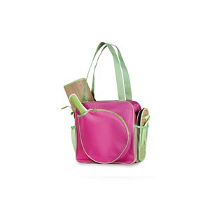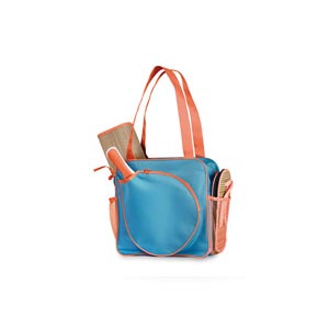 Beach set in satin polyester includes a beach bag, foldable straw beach mat, racket game and a set of slippers in matching colours.
