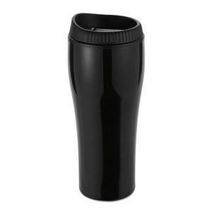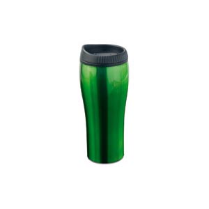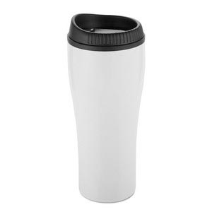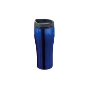 Stainless steel drinking mug with plastic lid in metallic colour. 500 ml capacity.