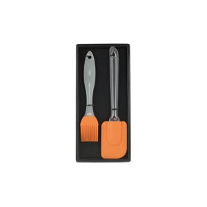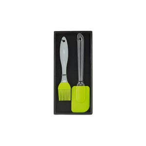 Silicone kitchen set including a brush and a spatula with plastic handle. Packed in a giftbox.