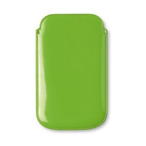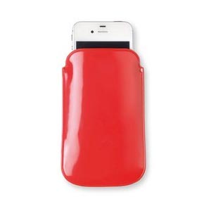 Smartphone sleeve in shiny colourful heat sealed PVC.
