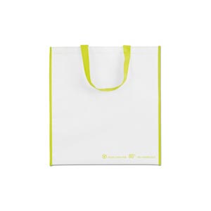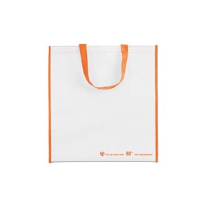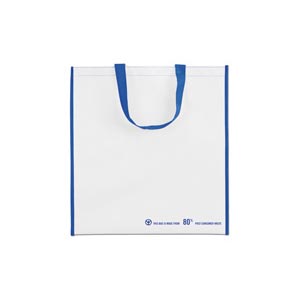 PET shopping bag. The message 'This bag is made from 80% post consumer waste' is printed on the frontside of the bag.