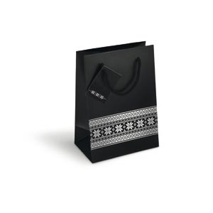 Elegant gift paper bag with silver Nordic style pattern. Gift tag included. Small size.