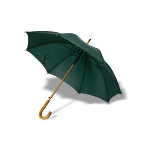 23.5 inch umbrella with wooden grip. Opens automatically. 190T polyester.