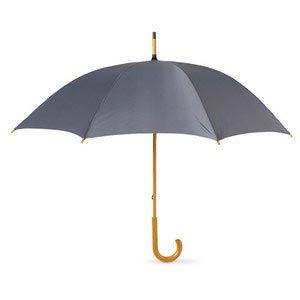 23.5 inch umbrella with wooden grip. Manual opening. 190T polyester.